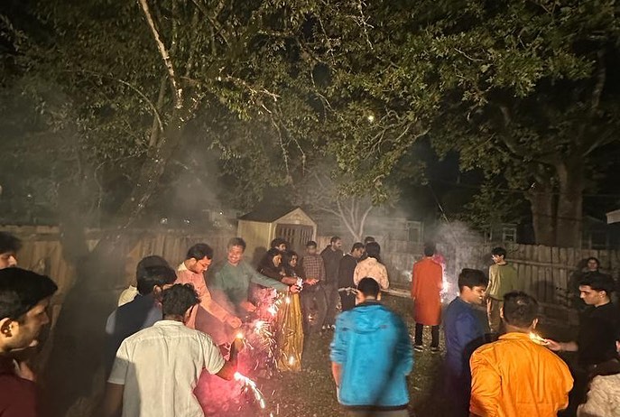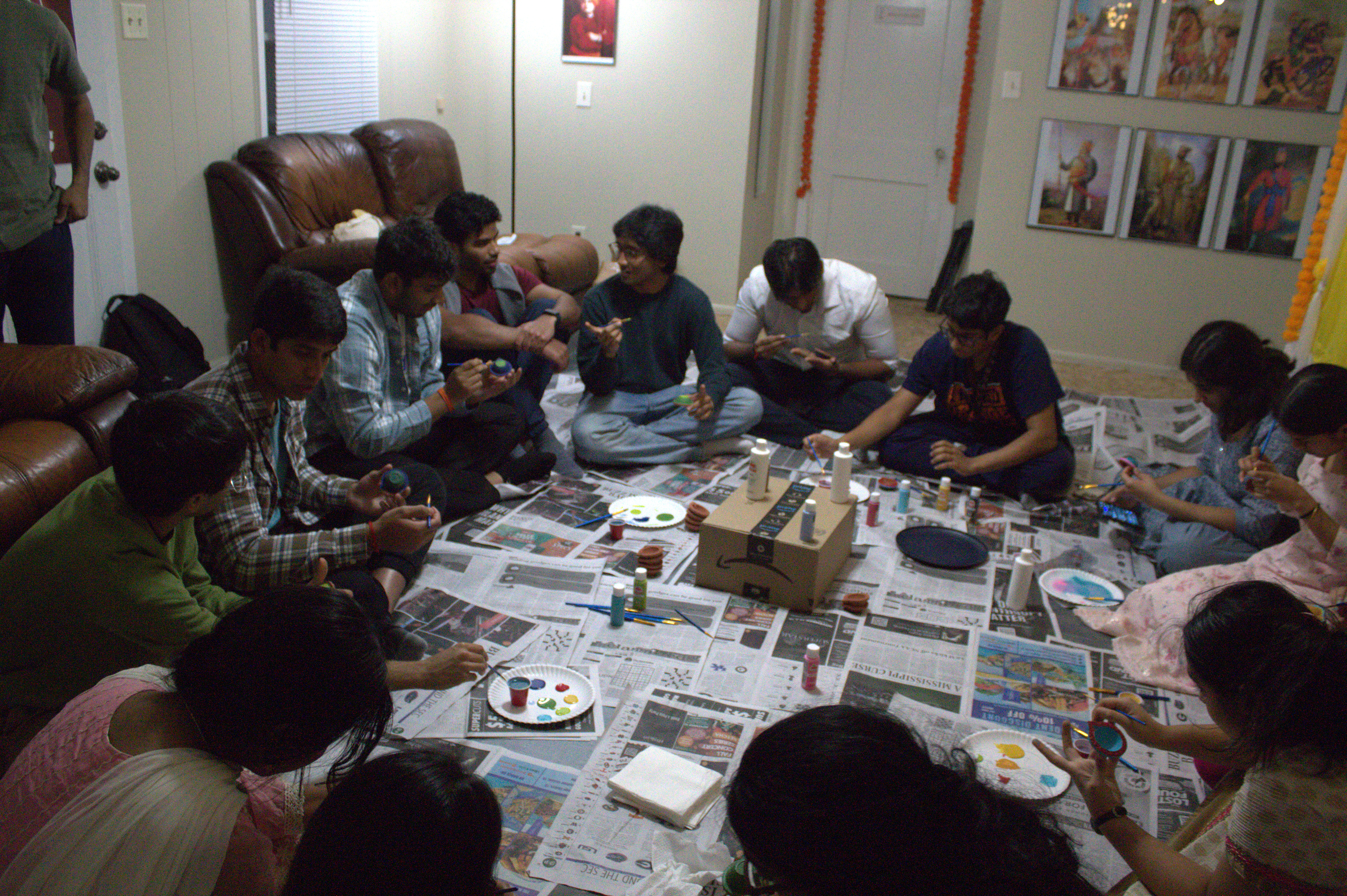 Hindu YUVA at Texas A&M University hosted a Diwali event at the Vivekananda House to celebrate the Festival of Lights! The night featured rangoli making, diya painting, mehndi, and fun games happening throughout the night. Lakshmi Pooja was conducted in the evening during the festivities, and firecrackers marked the end to the night. It was a great way to celebrate the festival with other Hindu youth at Texas A&M and get together for food, fun, and festivities and feel the energy of Diwali in College Station, TX!